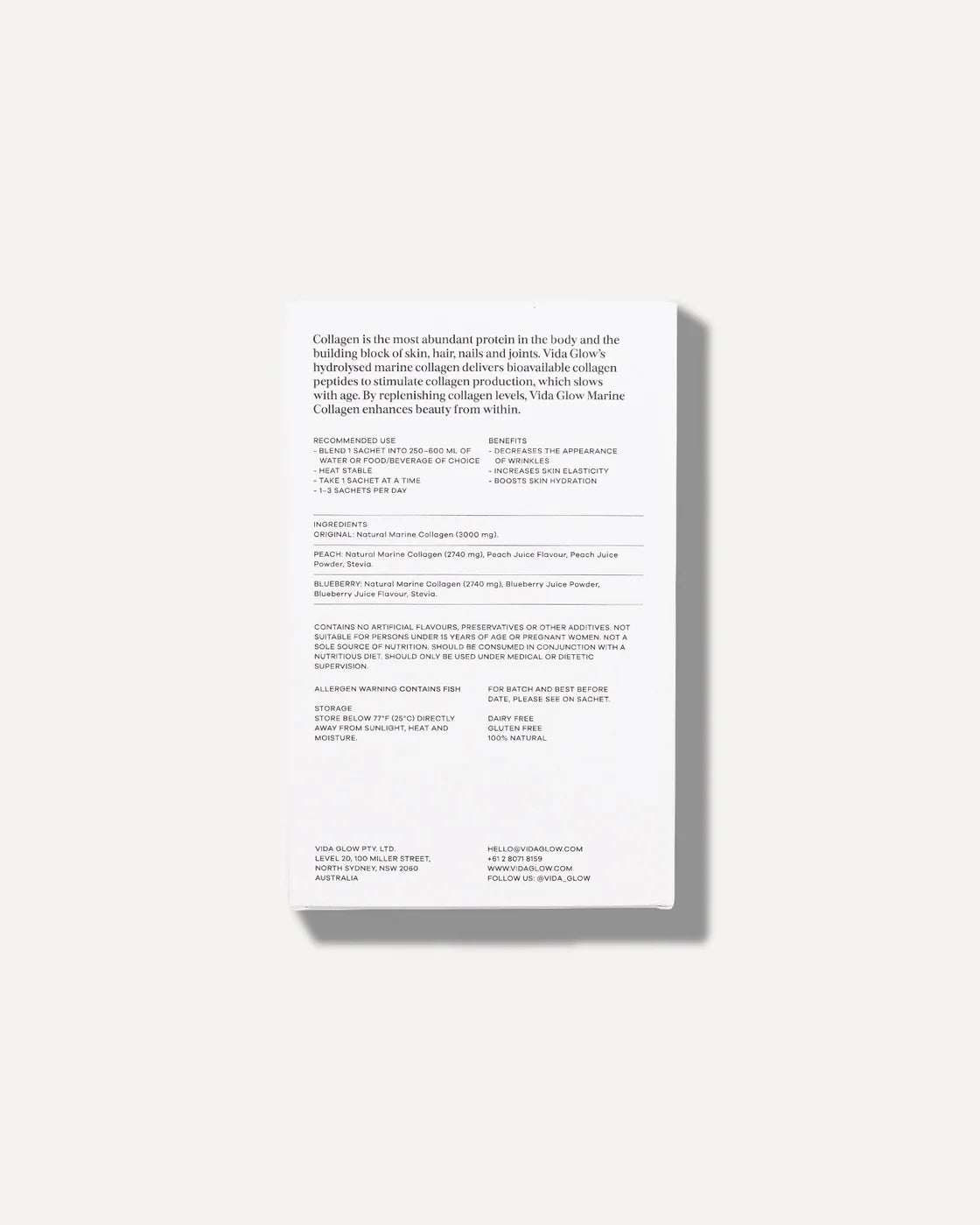 • 3g of Natural Marine Collagen peptides per sachet